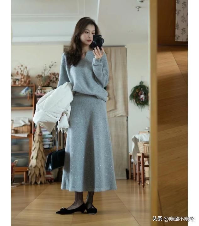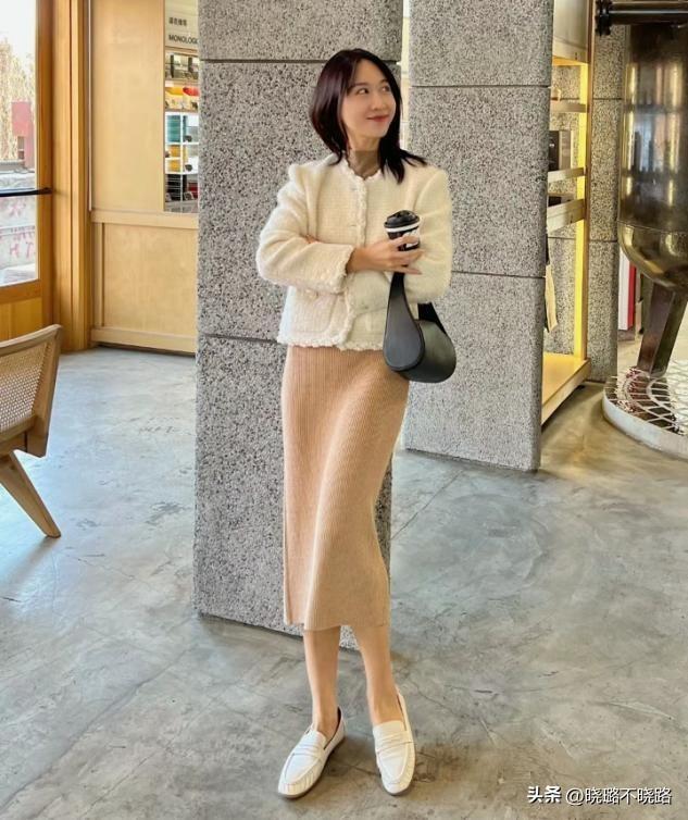 學會注重單品之間的呼應效果,那麼我們的裙襬長度就需要呼應個頭,中等或者偏矮個頭的女生選擇過膝長度的針織裙,拉長身材比例不成問題,高個子女生對於裙裝長短並沒有約束。