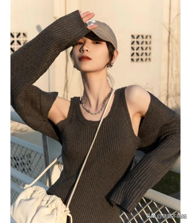 時尚風格的穿法少不了疊加的設計,針織開衫與針織裙同時出現,讓吊帶款型的針織裙彰顯出性感嫵媚的一面。這一類緊身款式的裙裝不會顯胖,因爲有開衫來作爲手臂線條的修飾,凸顯出兩層穿搭的精緻感