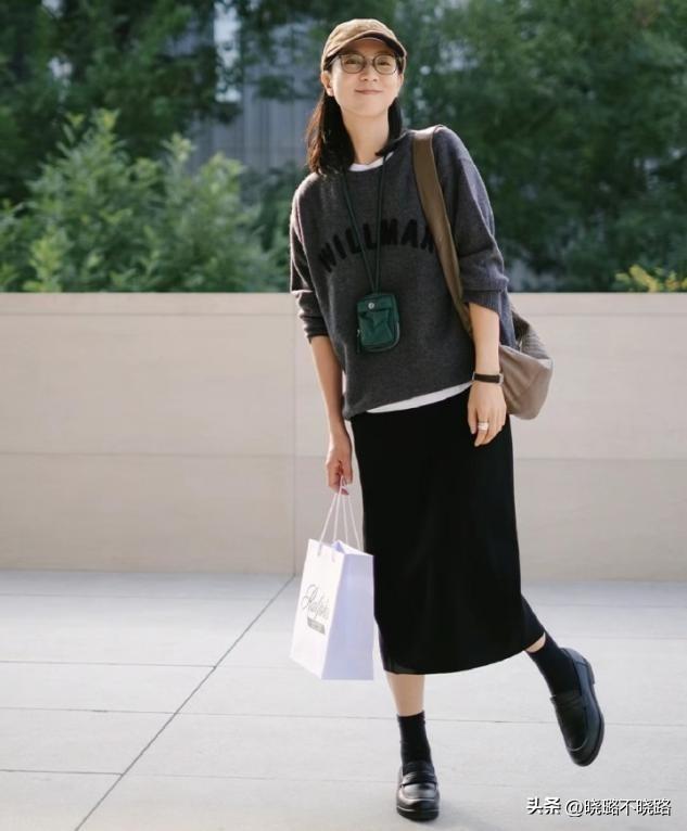 直筒裙裝的穿搭也有合適的拉長比例,我們學會那些露腳踝的穿搭,可以彰顯出乾淨利落感,平底款式的皮鞋搭配短襪,做好線條的維護和延展性,體型的優勢就可以展示的更加到位。