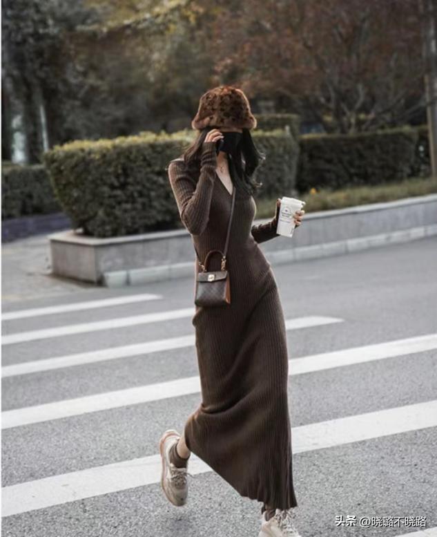 慵懶風格的穿法可以讓設計點更多的關注在針織裙本身,一條連衣款式的裙裝可以有包臀的線條感,也可以有小領口來作爲線條修飾,但是過膝的長度纔會更顯身材,也保護那些腿型偏粗的女生,穿衣更加自信。