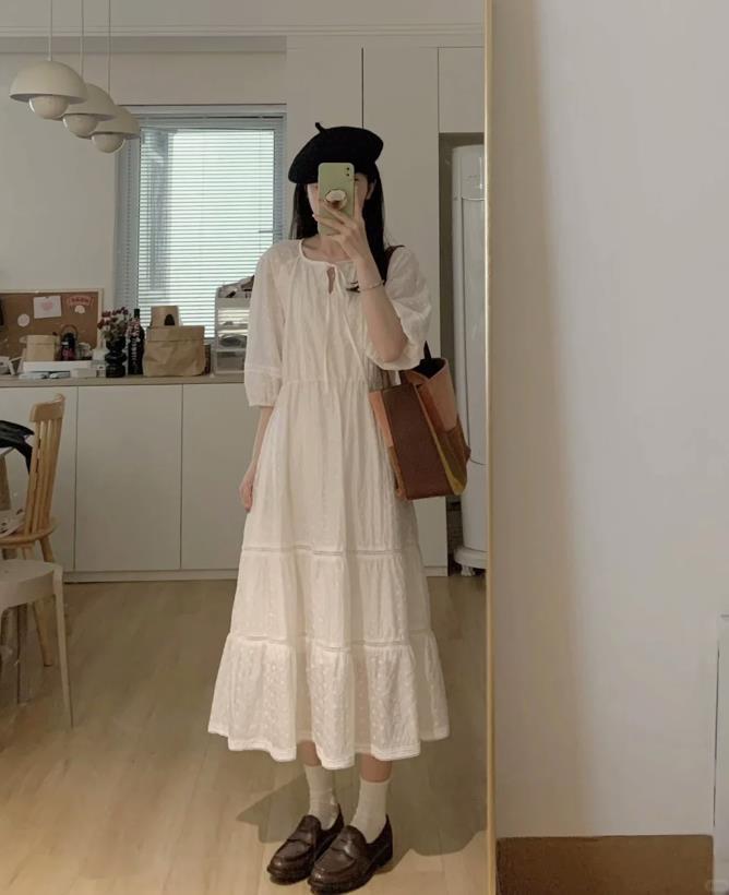 約會、逛街都可以穿的小白裙,乾淨的白色,不僅溫柔氣質,還帶着一股仙氣範。出門簡單配一雙棕色的樂福鞋就行,軟乎乎的材質,穿起來可舒適了。