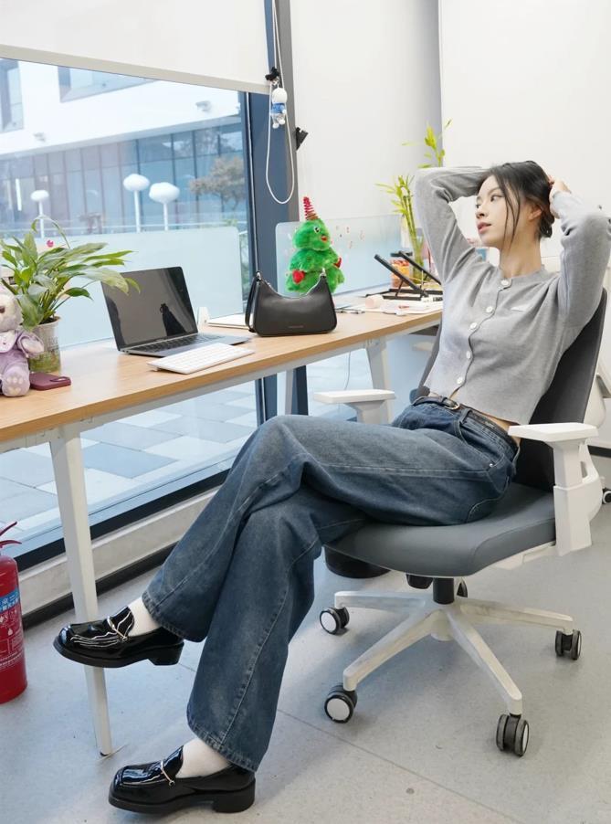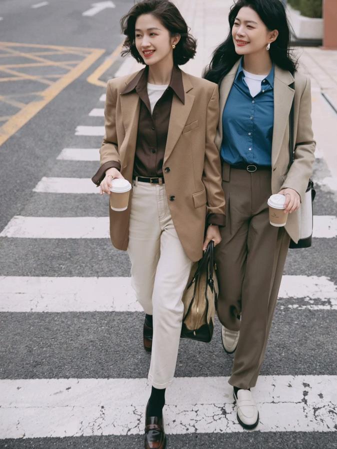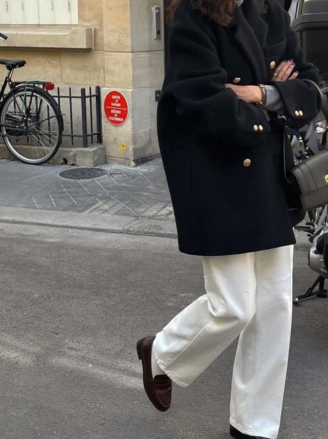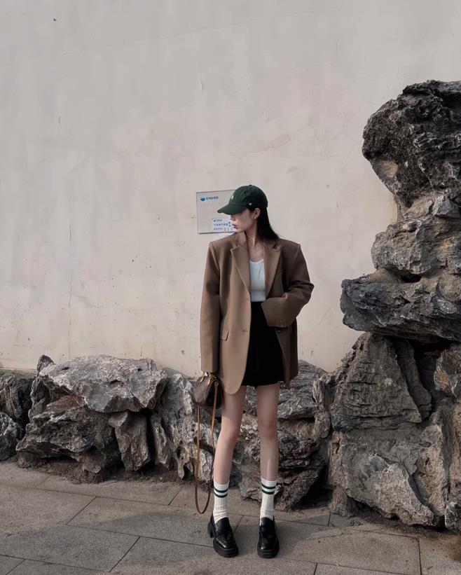 西裝外套可是已經可颯可美的職場時髦單品,版型相對比較收攏的正肩西裝和同色闊腿褲,幹練又有氣質。米白色的牛仔褲,搭配長襪樂福鞋,再拎個大包包,輕鬆撐起摩登職場範。
