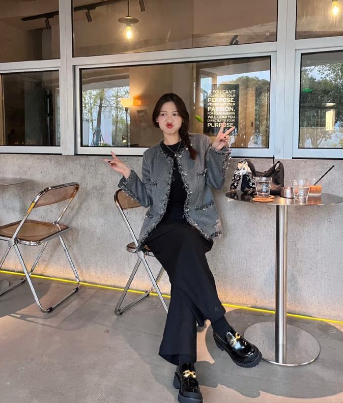 這一套完全可以滿足上班和逛街休閒的穿搭,在春天裏,小香風外套可是備受青睞的,選擇直筒牛仔褲和樂福鞋來配,舒適自在又好看。