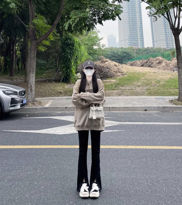 衛衣+微喇褲,顯瘦一絕啊,基礎款的衛衣,很好搭配衣服,也不挑身材和年齡,黑色的開叉微喇褲,穿起來就能擁有一雙大長腿了。