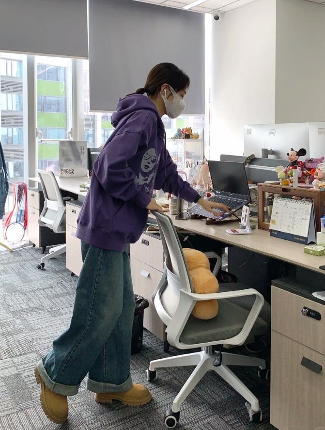 上班已經那麼累了,不得穿得舒服一點纔行麼?職場通勤的姐妹們可以借鑑起來的一套,紫色連帽衛衣+牛仔闊腿褲,有點酷帥又時髦減齡。