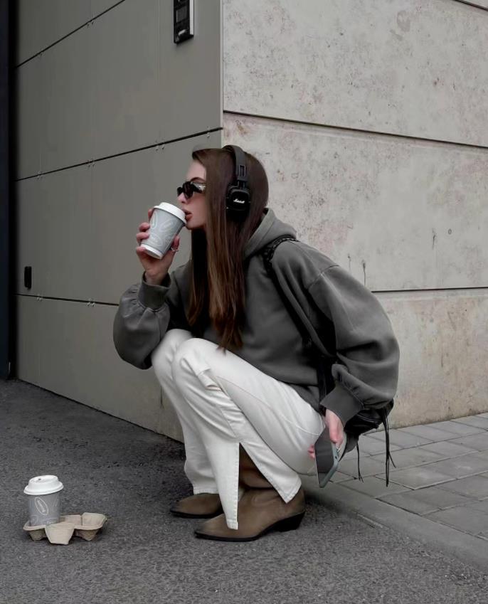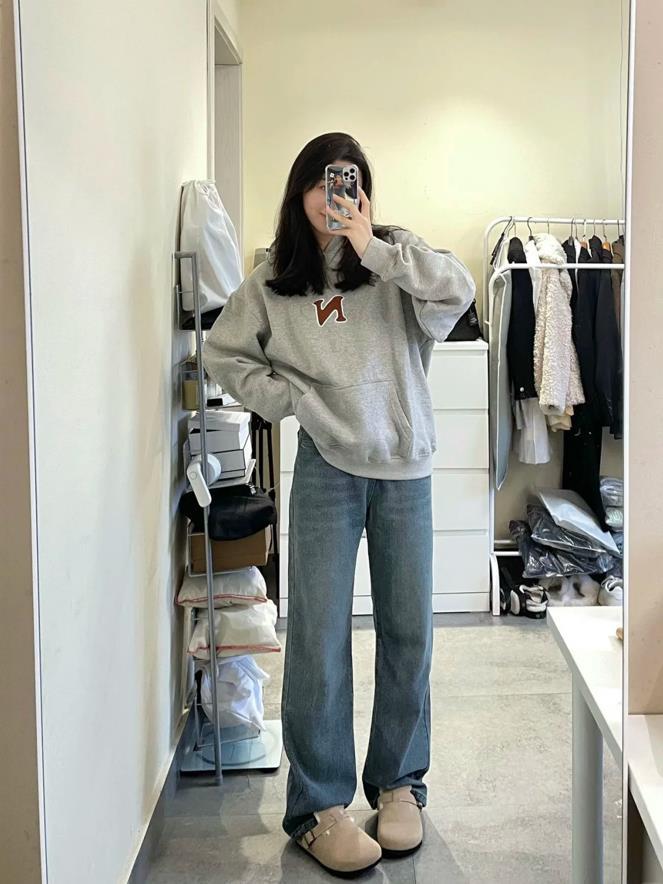 小個子女生很值得借鑑的一套,高級灰衛衣,看起來就非常百搭時髦,寬鬆的版型,穿起來自在鬆弛又不失慵懶。