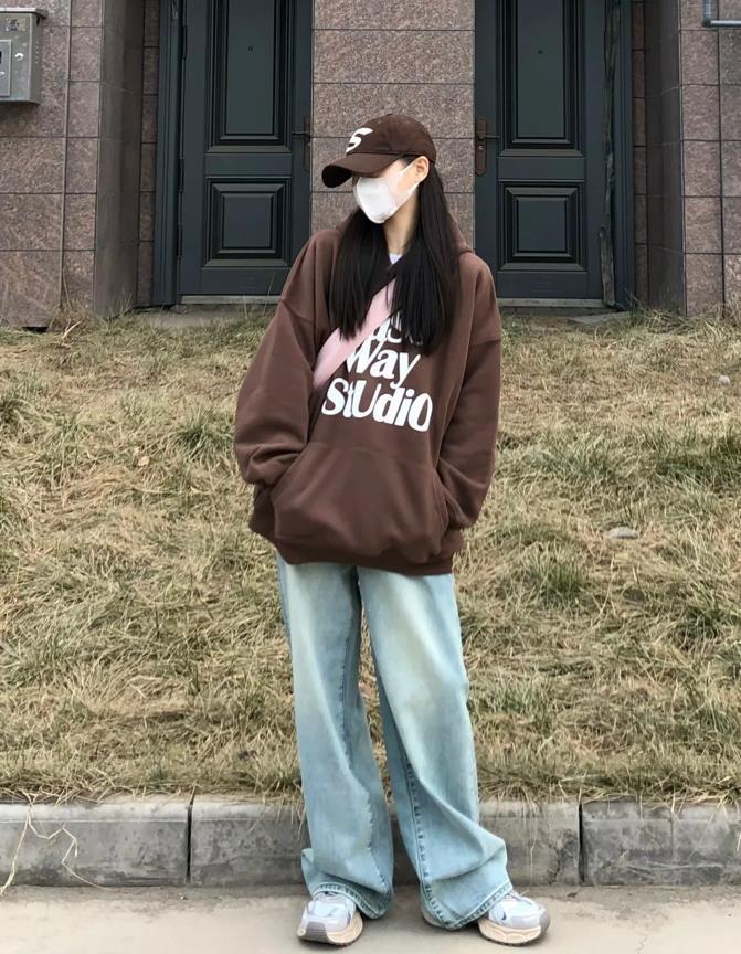 對衛衣這件單品,我實在是太愛了,濃郁的巧克力色,上身後不僅顯白,還很好搭配衣服。與直筒拖地牛仔褲組合在一起,一整個大寫的美式休閒範。