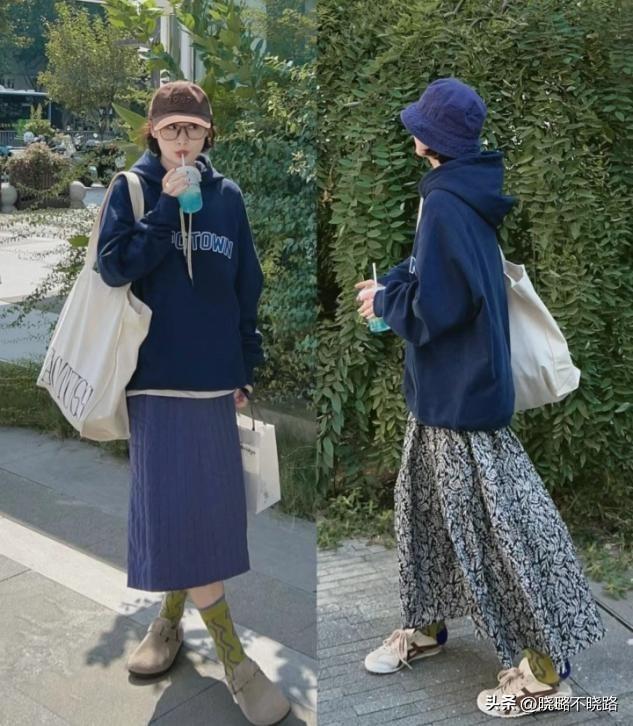 原來,今年更流行的是衛衣搭配半身長裙的選擇,身材體型偏胖的女人,與半身裙裝的駕馭會更加自信,裙子打造出來的造型空間感,對於身材包容性瞬間提升,整體造型或緊身或寬鬆,絕對是比褲子更優秀的選擇!