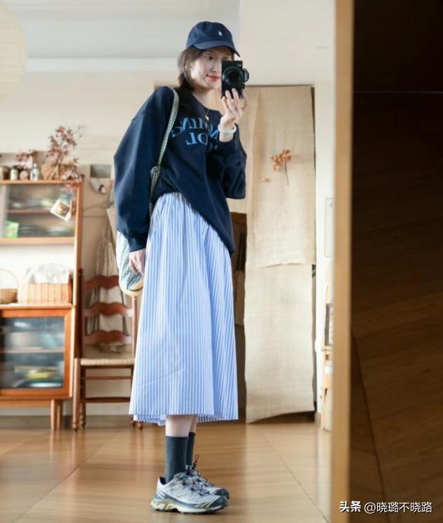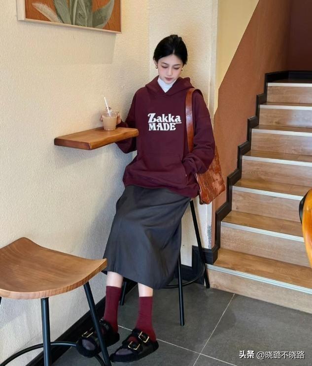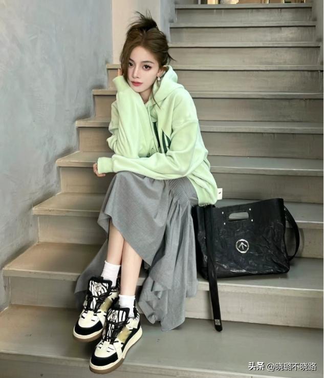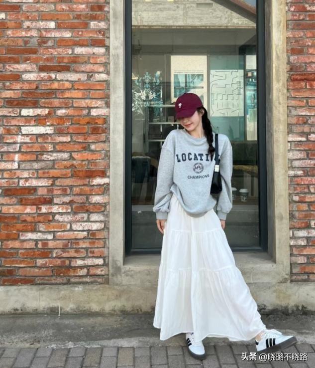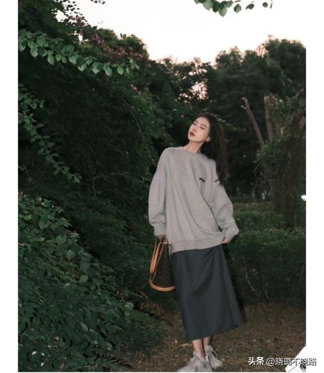 (2)長裙和衛衣的組合技巧,高級感只有兩點