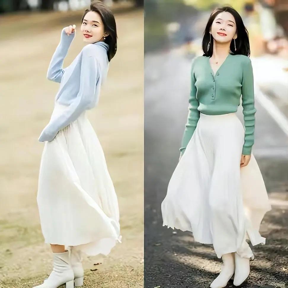 針織衫搭配不同面料的直筒半身裙,所呈現出來的風格氣質也不同。針織衫配牛仔半身裙,更加文藝甜美一點。水洗藍的牛仔半身裙,也很減齡顯白。