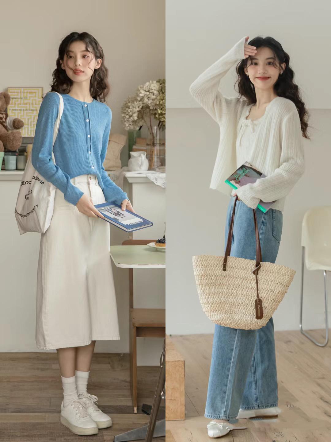 純色系的針織衫,給人一種嫺靜溫柔的美。不管是乾淨澄澈的淺藍色、還是充滿着生機的淺綠色,都是比較減齡又耐看的色系。