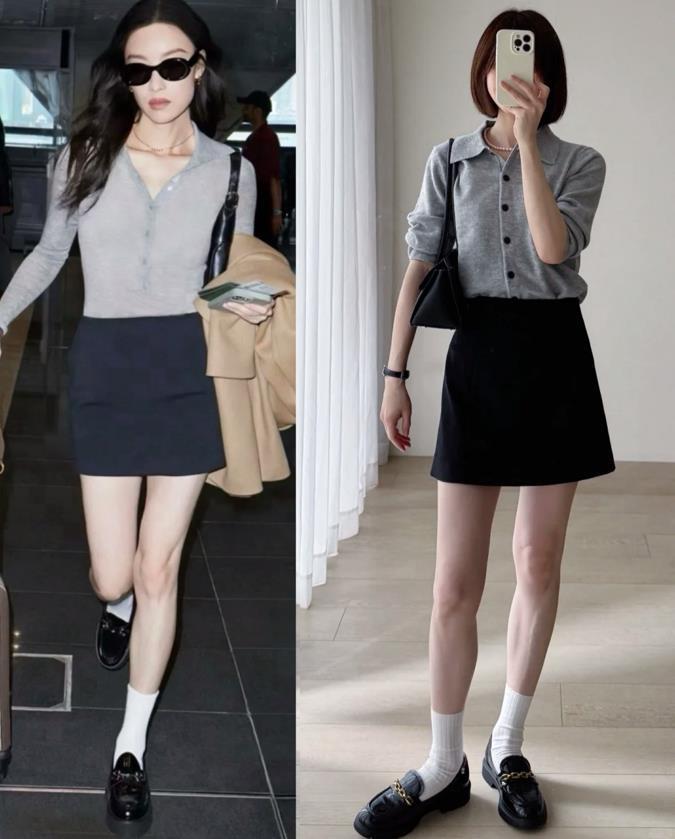 今年春天,除了運動鞋之外,樂福鞋也不妨給自己準備起一雙,經典黑的樂福鞋,穿起來不僅舒適自在,還非常百搭。跟倪妮學下穿搭,針織衫+半裙,利落幹練又不失氣質。