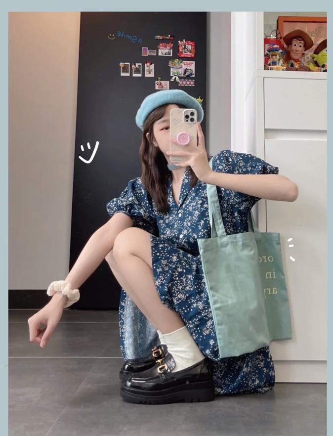 很顯乖巧的夏日連衣裙穿搭,不管適合出遊,約會和逛街都是很不錯的,浪漫的小碎花,讓你輕鬆穿出小清新,搭配黑色樂福鞋後,不僅舒適自在,還很溫柔。