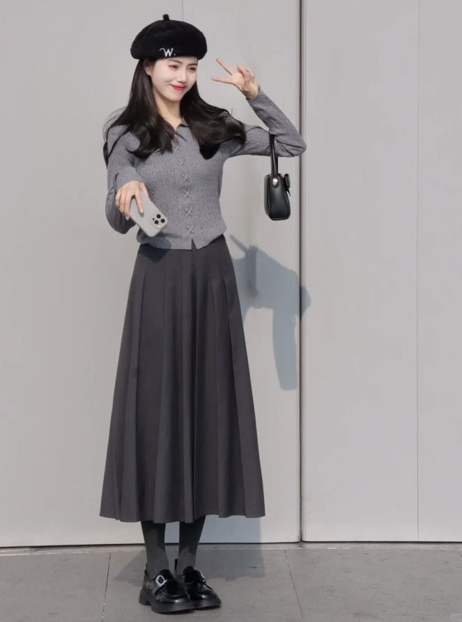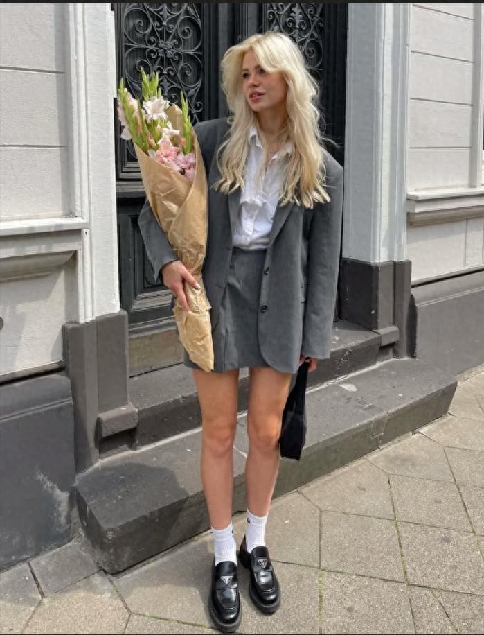 高級又溫柔,格雷系的搭配實在是太好看了,對於灰色系的搭配,就是無法拒絕,搭配的黑色樂福鞋,也是很經典百搭的鞋款。