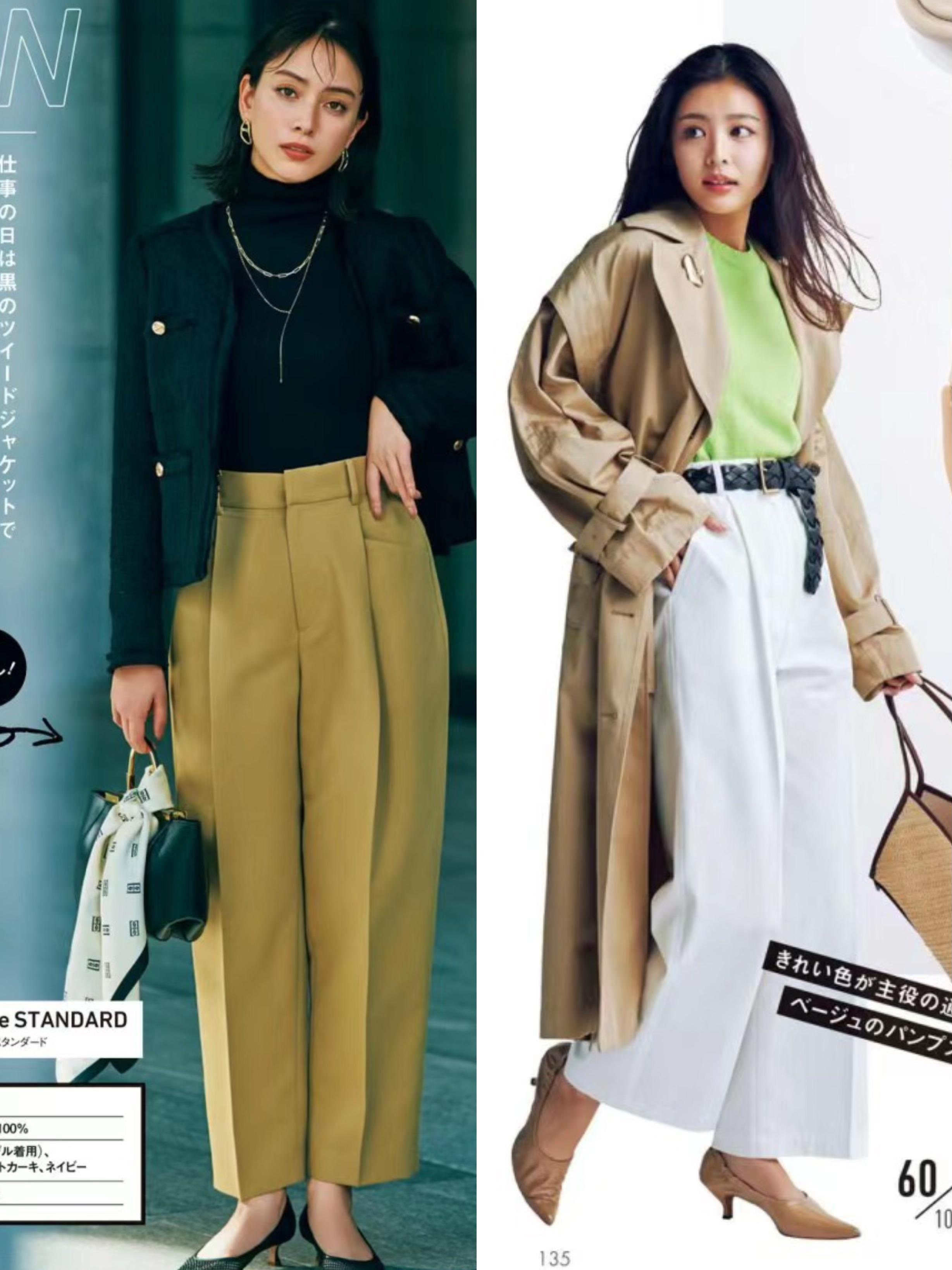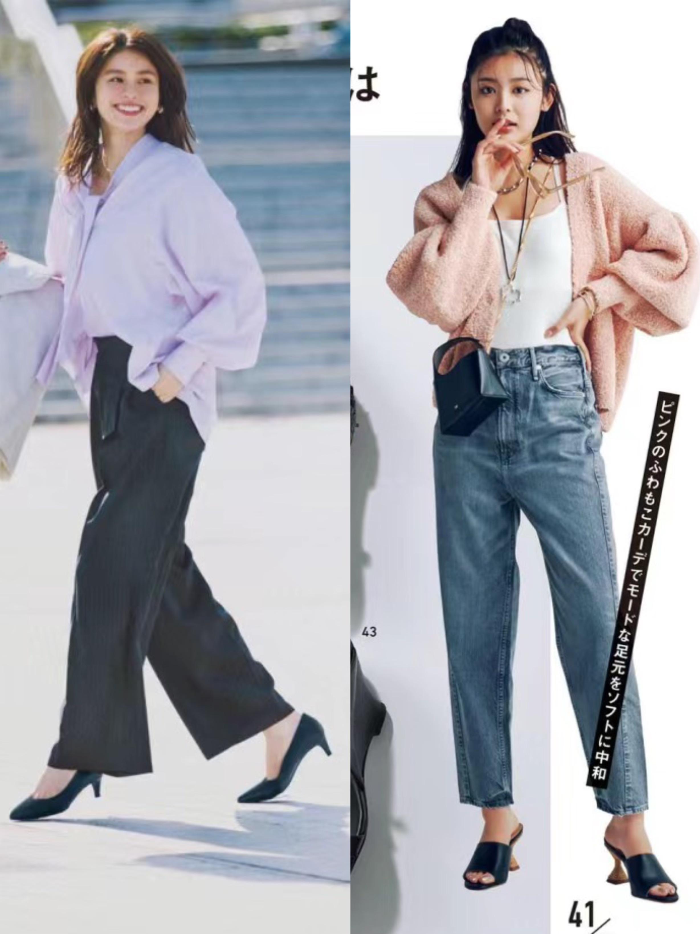 寬鬆的西裝褲,可以搭配貓跟鞋來穿着,剛好露出鞋跟的位置、表現出一種輕盈又高挑的美。精緻的貓跟鞋,配上寬鬆的西裝褲,一點都不會顯邋遢。