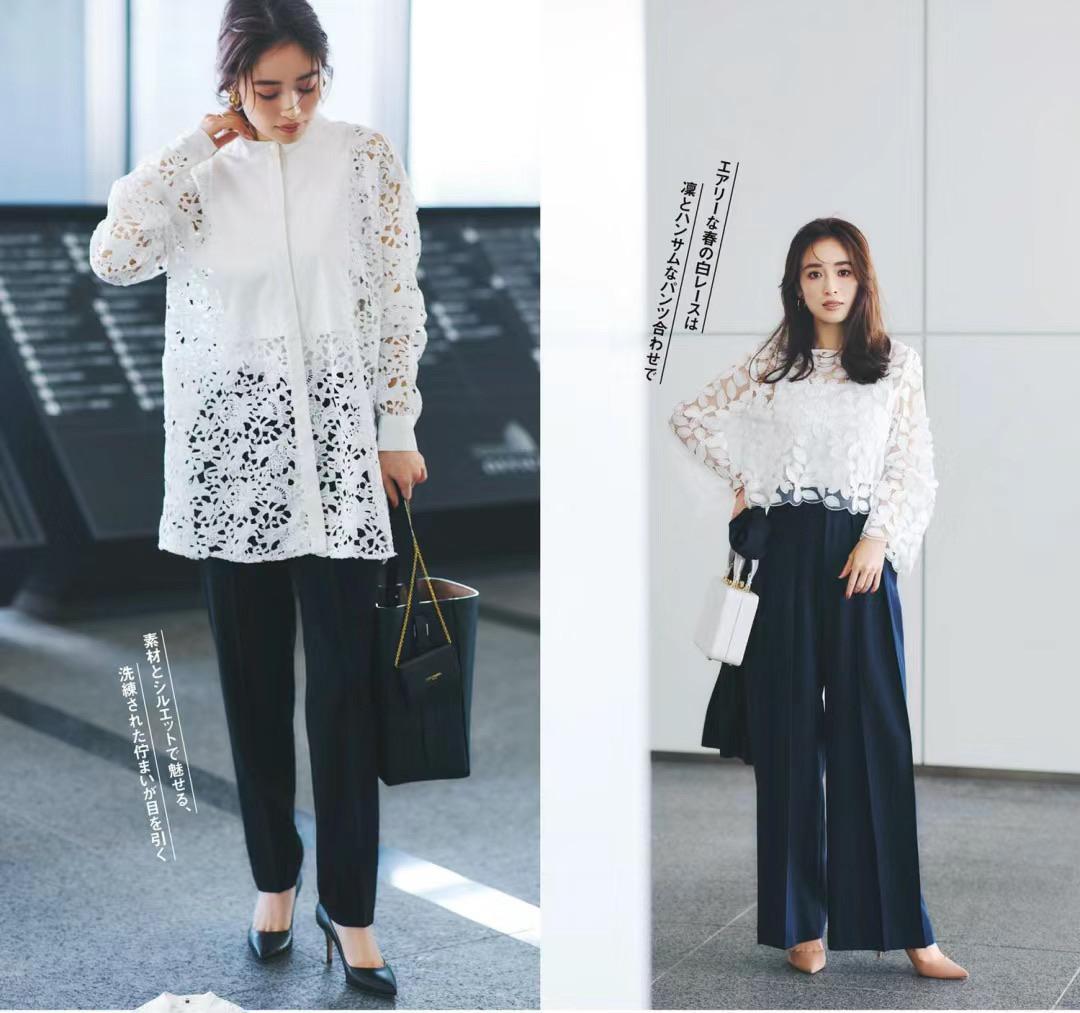 精緻又浪漫的蕾絲上衣,給人一種溫柔又嫺靜的美。寬鬆的襯衫襯衫,或者修身的蕾絲襯衫,都可以搭配高腰褲來穿着。