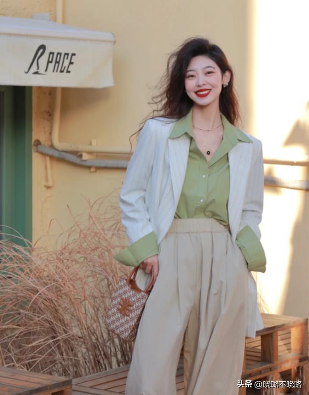 對於西洋綠這種色彩,建議將其與淺色調進行搭配,這樣的組合能夠維持色彩的穩定性,避免產生突兀的效果。特別是與米白色或白色調的搭配,會呈現出一種淡雅而清新的視覺效果,無論是進行疊穿,還是上下系列的搭配,都應展現出一種絕對的減齡和大氣感。