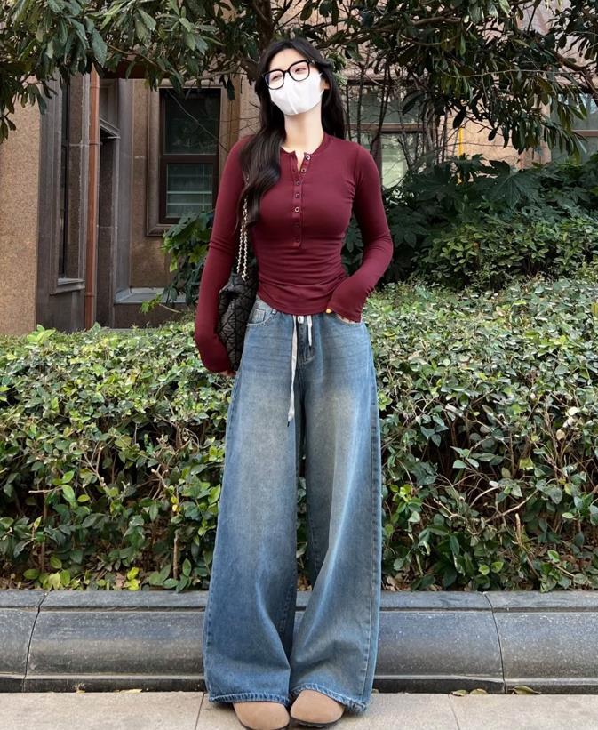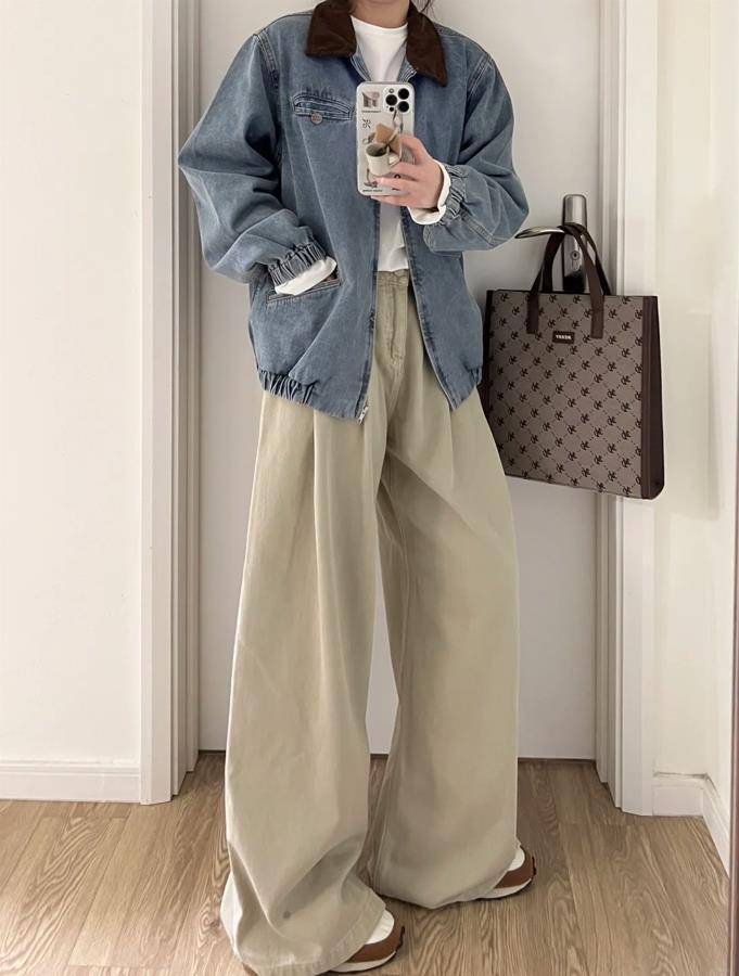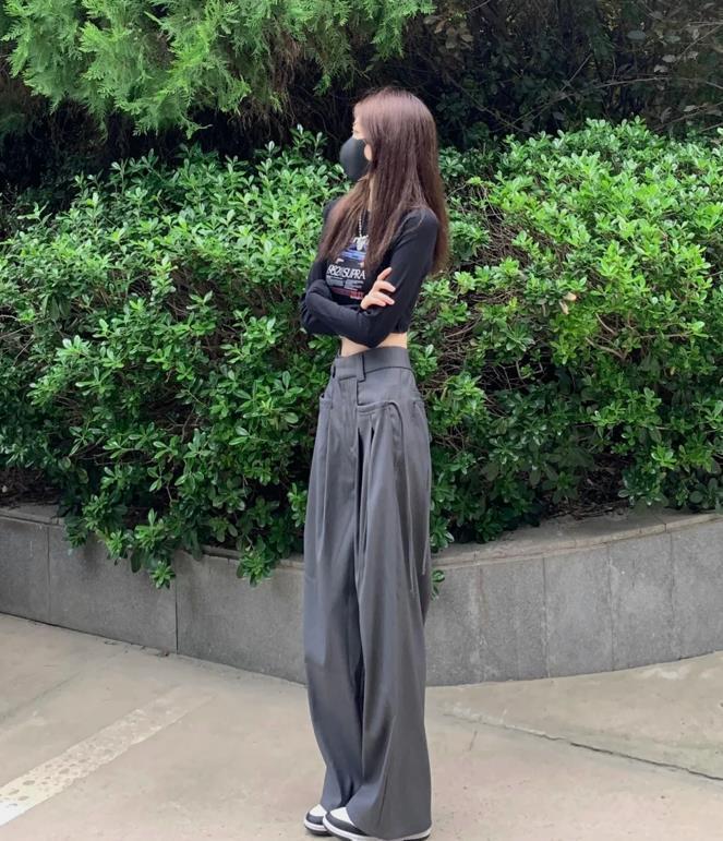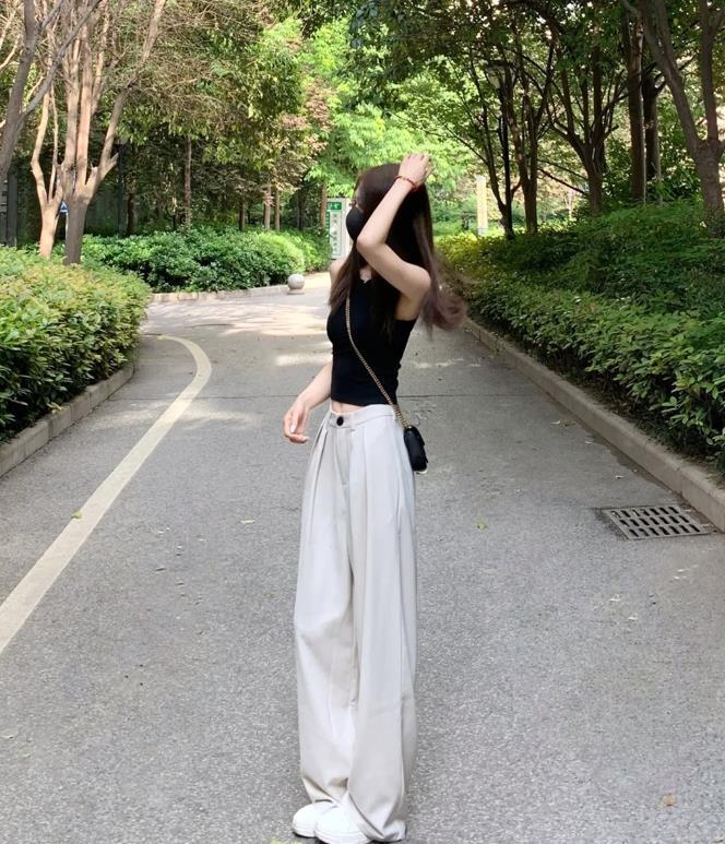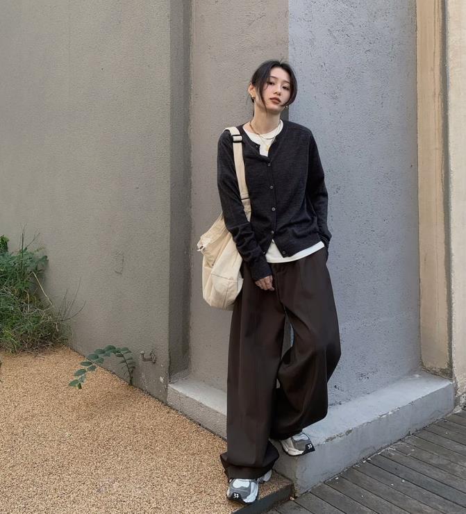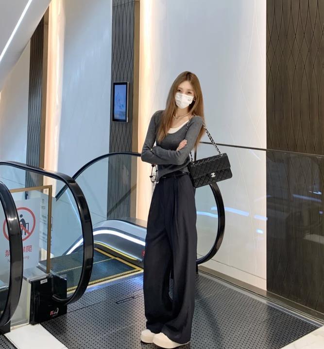 在選擇闊腿褲的時候,除了要注重版型之外,褲子的材質面料也是要多花費些心思的。垂墜感和質感好點的闊腿褲,更能讓你穿出顯瘦顯腿長的效果。