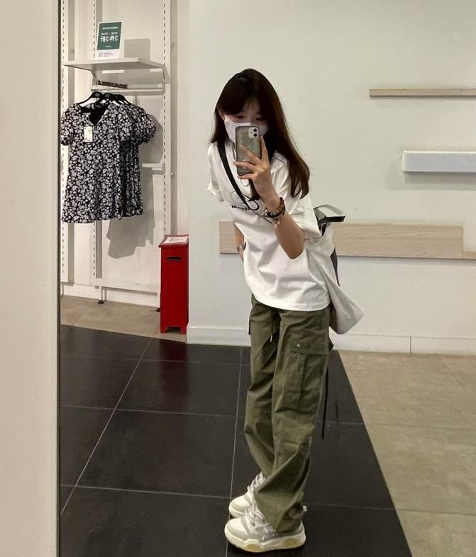 誰能拒絕這麼一條帥氣和舒適度兼具的工裝褲呢?軍綠色,帥氣感十足,選擇白色短袖t恤,運動鞋搭配,休閒舒適又好看。