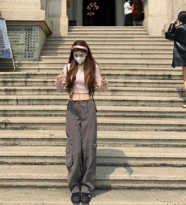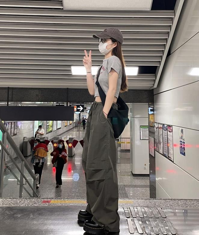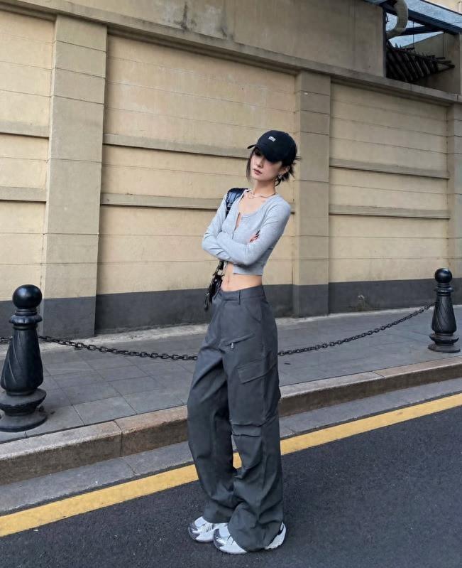 這一身穿搭輕鬆拿捏住春夏氛圍感了,甜美粉的短上衣+工裝褲,直筒版型的褲子,顯瘦效果絕了。上短+下長的組合,太修飾身材比例了,也能瞬間打造出高挑感。