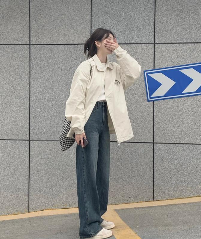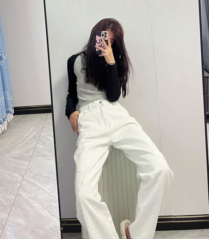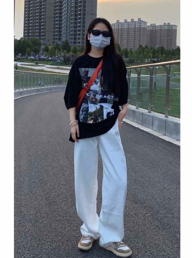 論一條白色牛仔褲有多百搭吧,我感覺百分之八十的衣服都能搭配上,寬鬆的版型,穿起來一點都不會顯胖啦。加上垂墜感也非常不錯,顯瘦又顯腿長。