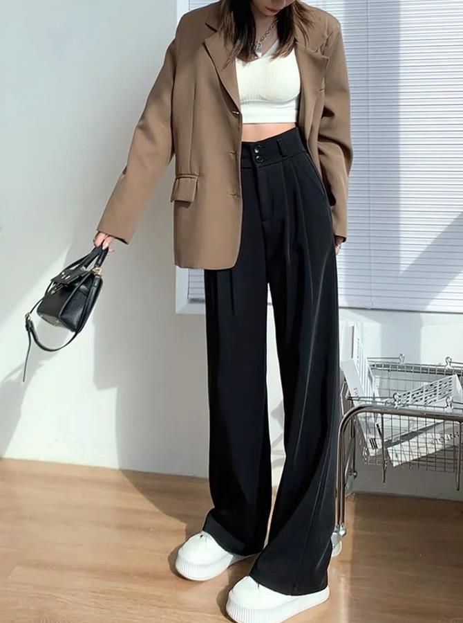 這條不僅適合日常通勤,還適合日常逛街的西裝褲,姐妹們說什麼也要安排起來,寬鬆舒適的褲型,給予你腿部更多的包容性。