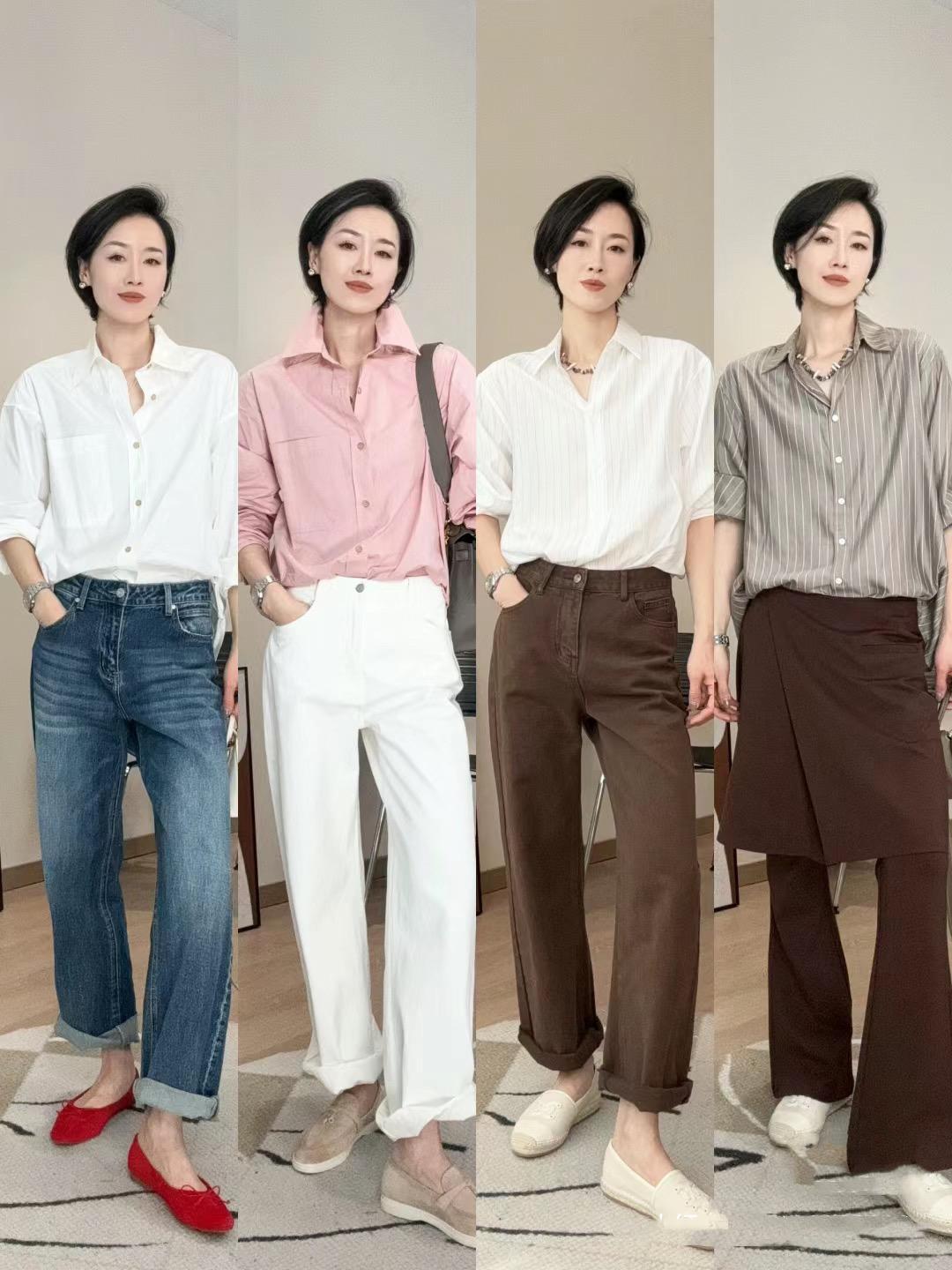 舒適又大氣的休閒風穿搭,可以在一定程度上弱化年齡感,對於40+的人羣來講,也是值得嘗試的穿搭組合。