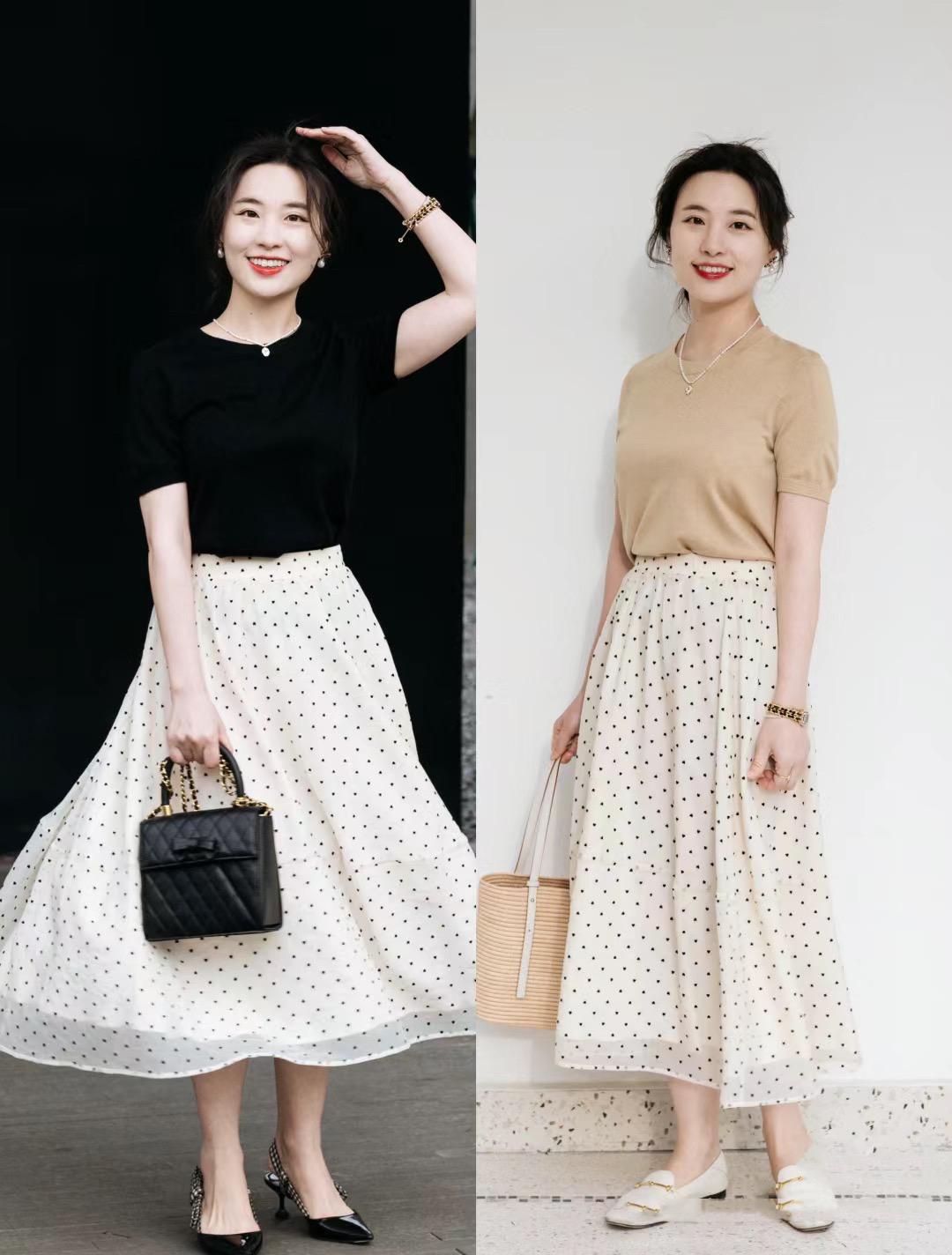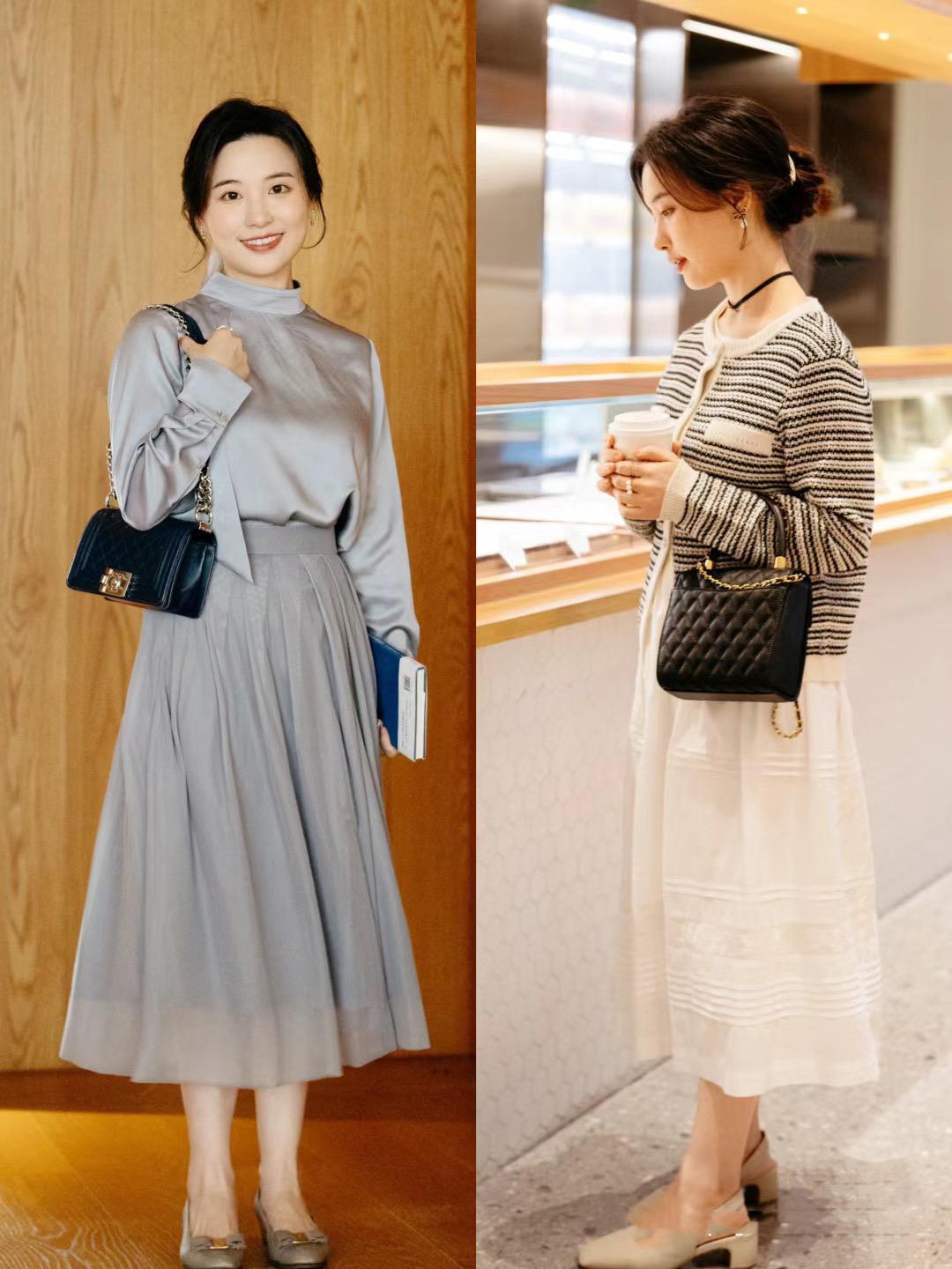 選擇一種搭配模版,必然是看中了它的獨特優勢。喜歡過膝裙+淺口鞋的穿搭,也喜歡這種舒適精緻的美,風格多變、浪漫顯高。