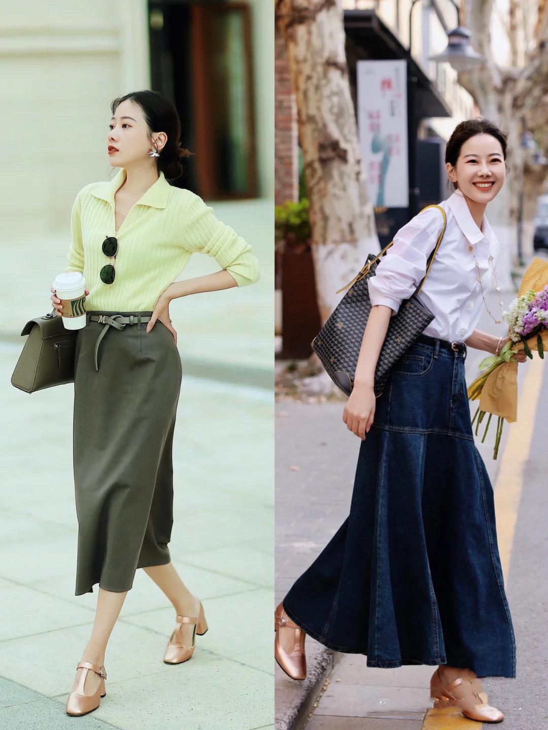 半身裙+低跟鞋,開啓時尚之門