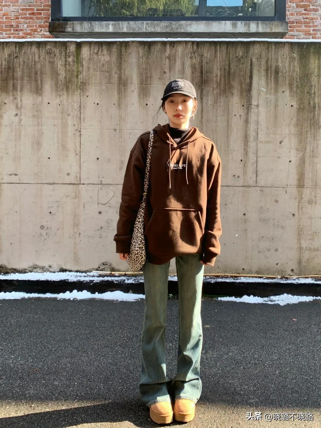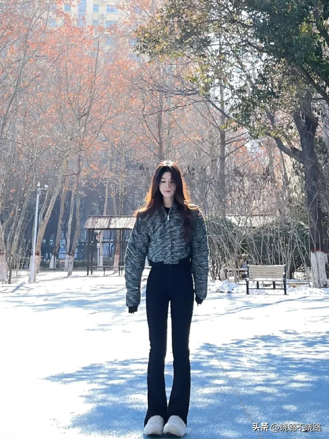 “馬蹄褲”有修身和寬鬆的部分,我們在配合其他單品的時候也得強化這種感覺,不論是內搭還是外套的選擇,寬緊層次感之間一定得凸顯出來,這樣纔有助於放大身材優勢,弱化的各種缺點帶來的視覺災難。
