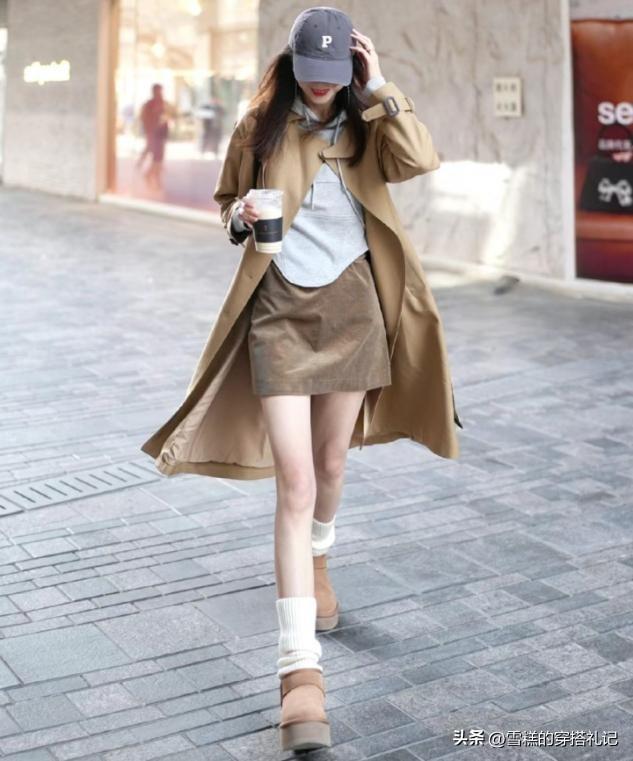 帽子和短襪單品也是風衣造型組合出彩的細節,帽子可以修飾髮型,平衡造型的頭肩比例,特別是配大領口的風衣,短襪包裹無痕褲或者打底褲,爲我們穿短裙短褲的時候奠定基礎。
