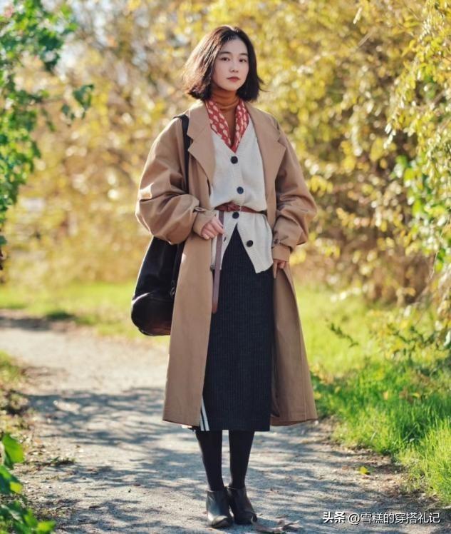 過膝長度風衣的穿衣技巧特別明顯,尤其推薦闊擺的造型走向,適當的打扮卡腰位置,我們就可以從容的去包容身材缺點,優化整體的氣質選擇,穿裙裝褲裝都好看。
