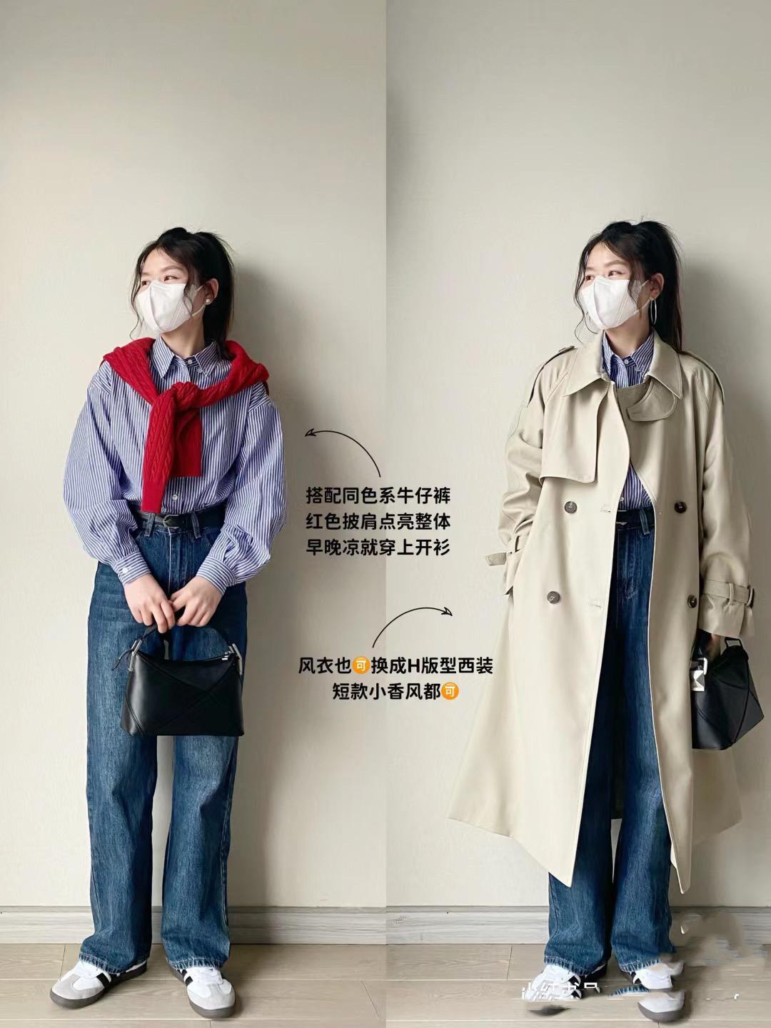 不管是26度還是16度的初春季節,早晚溫差都是蠻大的。早上出門的時候,我們可以披一件長款的風衣外套,風衣外套防風性更強,帥氣拉風還體面。