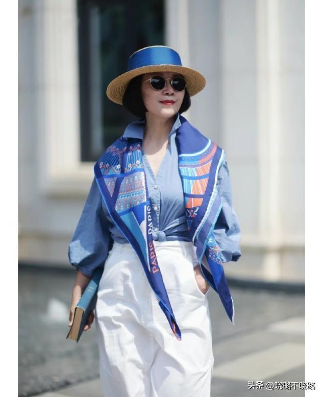 絲巾則是一種視覺效果特別豐富的小單品,我們穿搭一些大領口的上衣或者外套的時候,領口大面積的留白就很容易顯得單調。絲巾做好陪襯就可以達到恰好的優化效果。