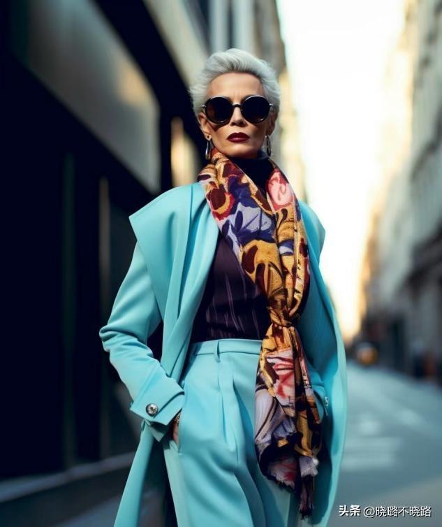 誰說奶奶們不能穿出時尚感呢?那些真正時尚大氣的穿搭,我們可以利用大輪廓的服裝來弱化身材的臃腫感,花紋點綴的長款絲巾,不僅僅是掛脖的設計,也可以選擇蝴蝶結的綁帶款式,花紋和亮麗的色彩增加了視覺上的精緻感。