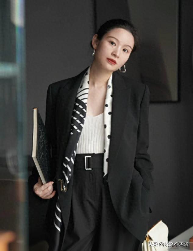 通勤休閒款式的服裝一般都比較正式,春天的時候大多常見襯衫或者西裝的匹配,那麼純黑或者純白色的絲巾會更符合這些造型的配色,實用性會更強。