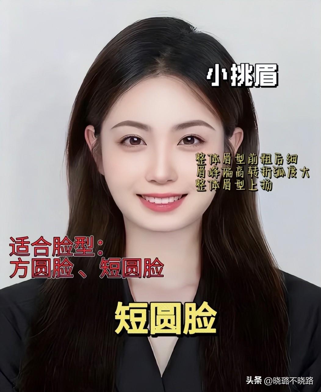 臉型圓潤的女人,本身就顯小,眉形不能畫太鋒利的款式,避免線條設計分明的,特別時不要畫突出的眉峯,選小挑眉最合適,眉形是前粗後細,眉峯爲高弧度轉折。