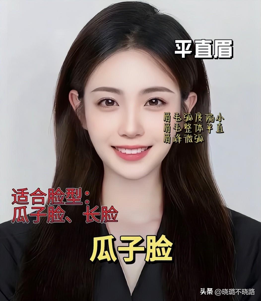 瓜子臉或者長臉的女生臉型比圓臉顯得更成熟,眉毛不要畫曲線感的,平直眉最佳,眉毛弧度平滑,眉峯微提,滿足的上寬下窄的臉型設計,也能做到縮短上下距離。