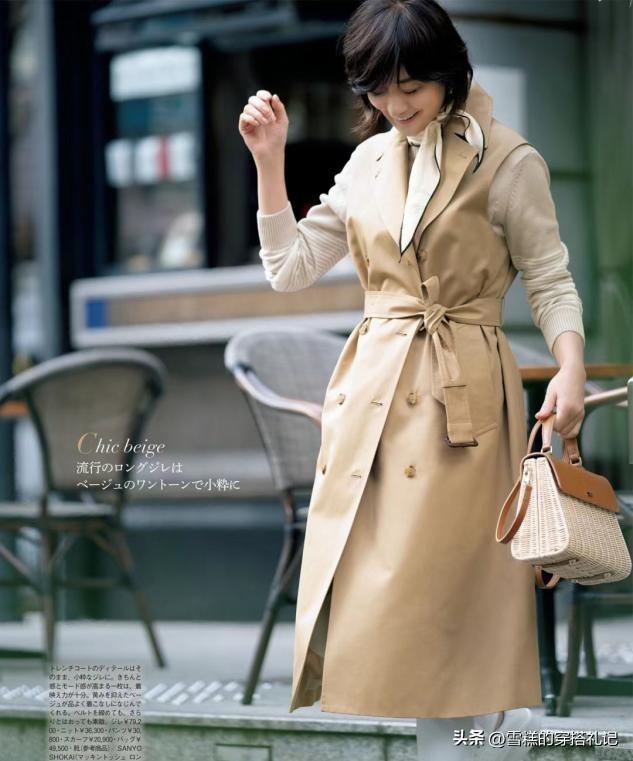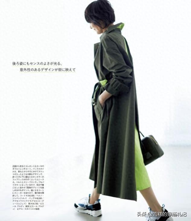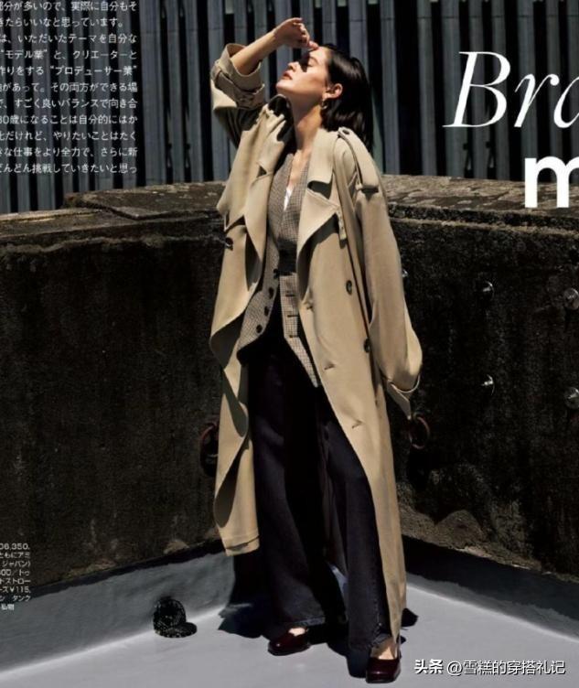 “風衣”下面不一定要搭褲子,瞧日本雜誌這樣搭,有多優雅減齡