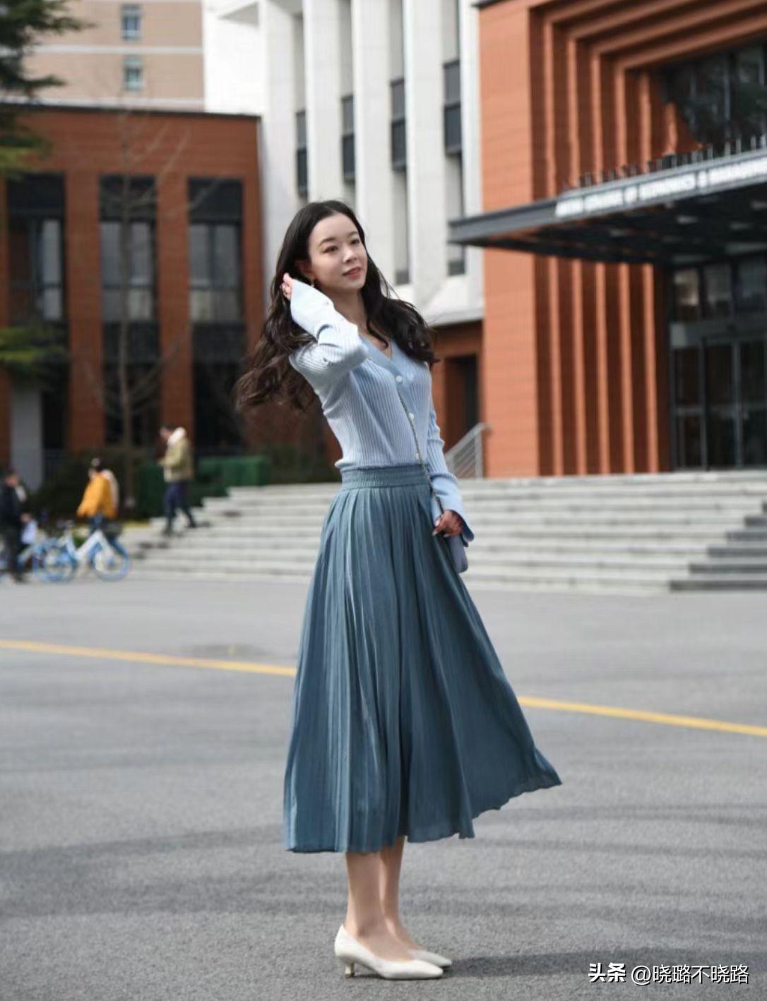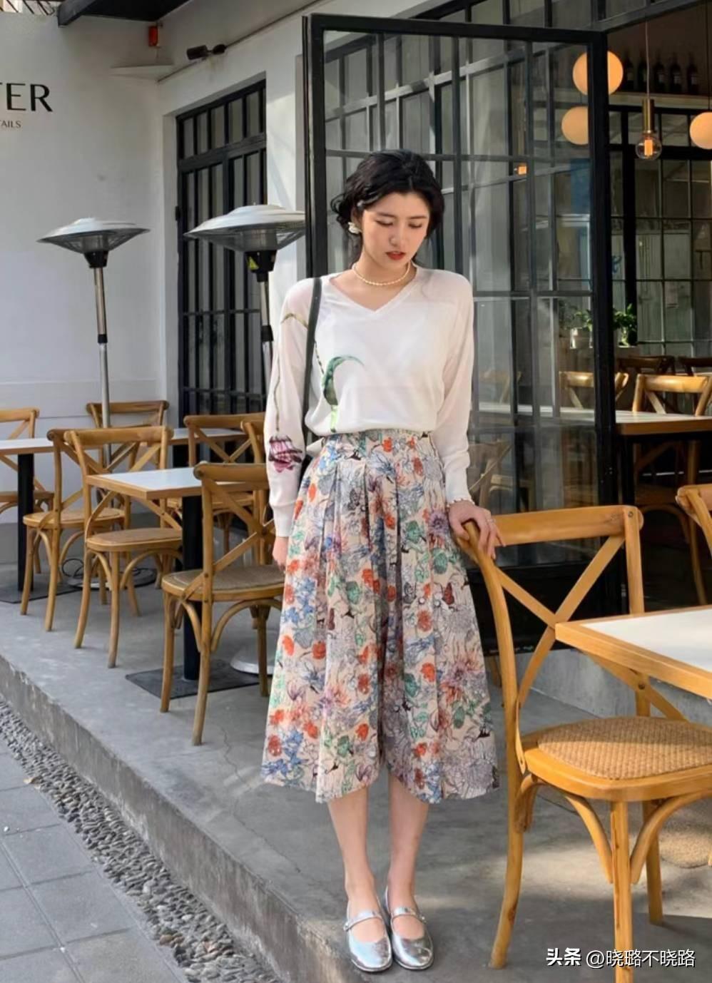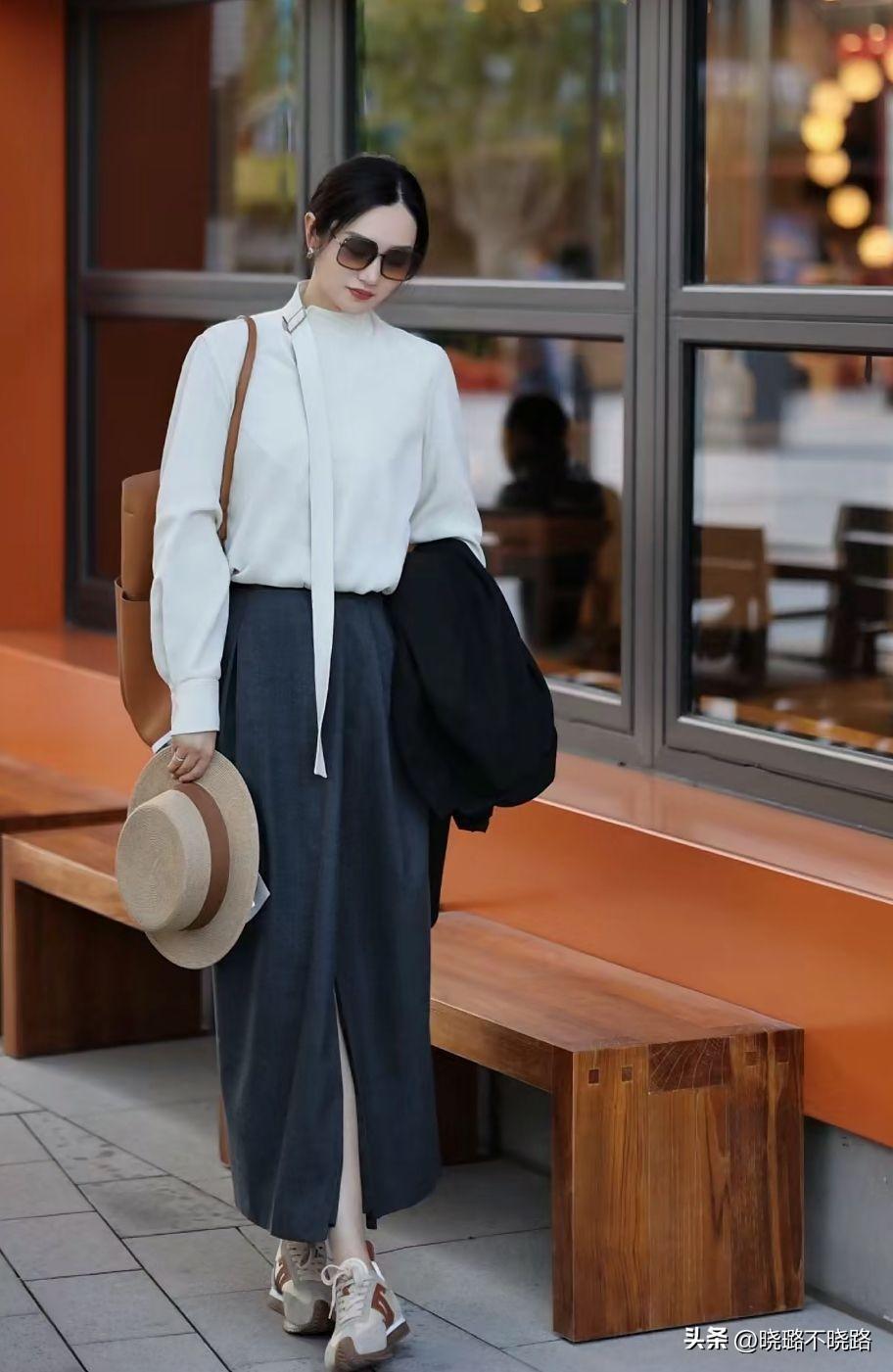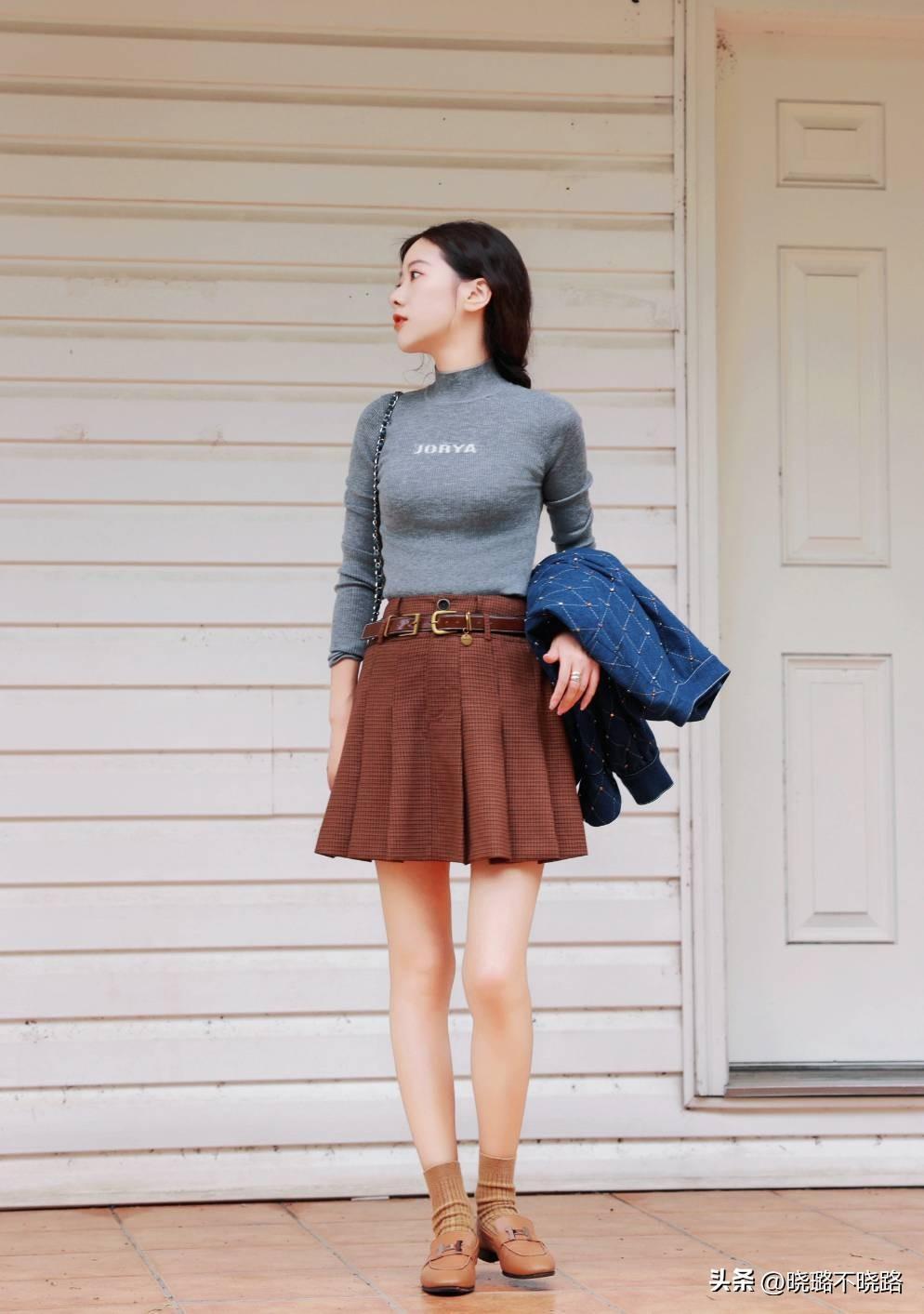 比如焦糖色的半身裙,可以搭配棕色樂福鞋,再利用一雙同色系的短襪進行組合,不僅顯腿長還格外時髦。