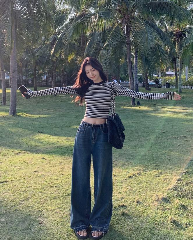 最近的天氣好好啊,條紋長袖t+闊腿牛仔褲,喜歡這種日常又帶點隨性的穿搭,溫度回升後的春季這麼穿正好。