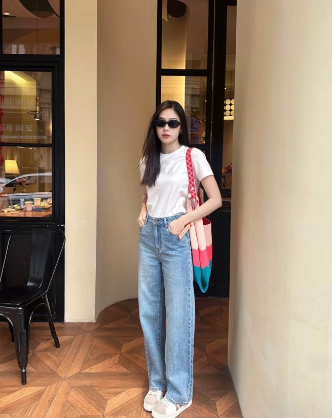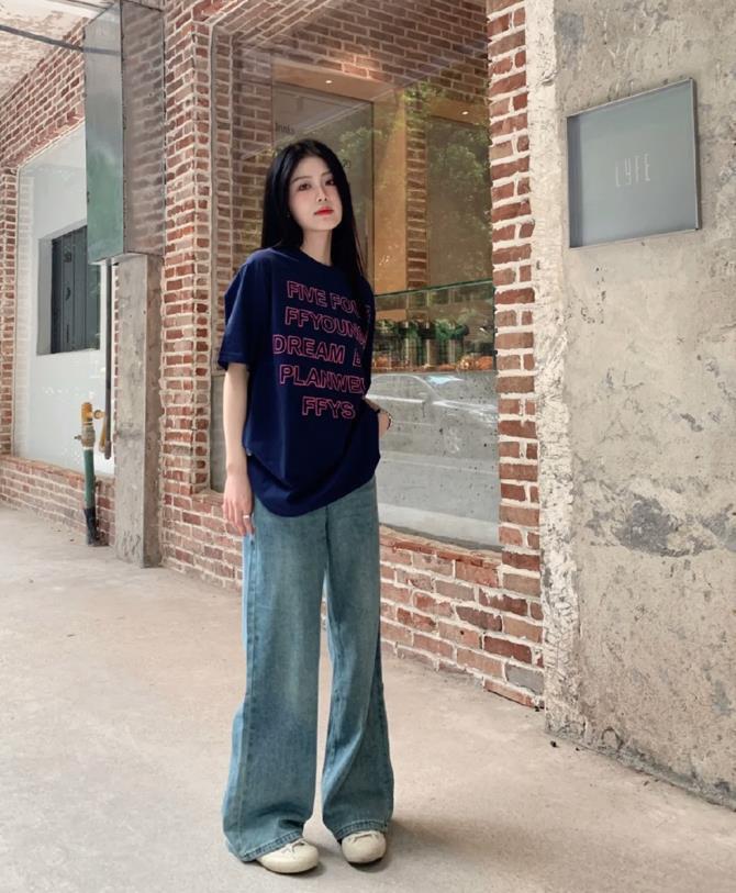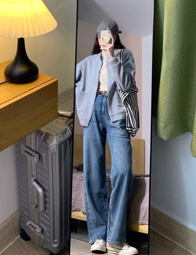 像這種直筒版型的牛仔褲,對於腿粗、腿型不夠好看的身材那簡直太友好了,穿起來不僅顯瘦還非常顯腿長。搭配任何一種上衣都是沒有違和感的。