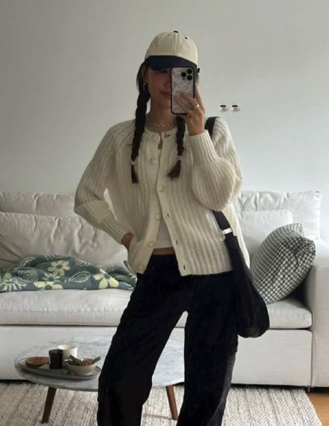不管是白色,還是奶油白都是很經典百搭的,不過比起純白色,融入了奶油色的白調,則更顯溫柔一些。