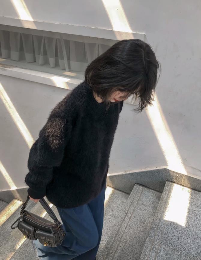 經典黑色的毛衣,可是很顯百搭和沉穩的,加上鬆弛一些的版型,穿起來就更加舒適自在,也能在視覺上起到很好的修飾效果。