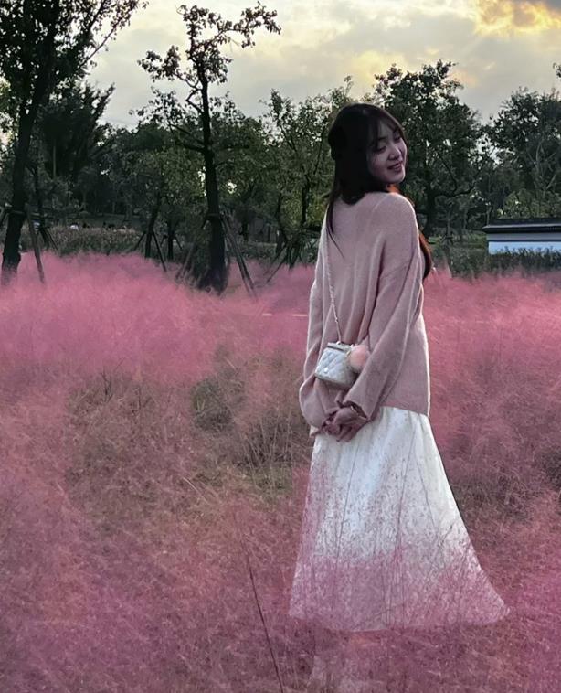 誰的衣櫥裏還沒有一件粉色毛衣呢?喜歡這種淺淺的低飽和度配色,看起來也太溫柔了,與白色半身長裙相配,氛圍感直接拉滿了。