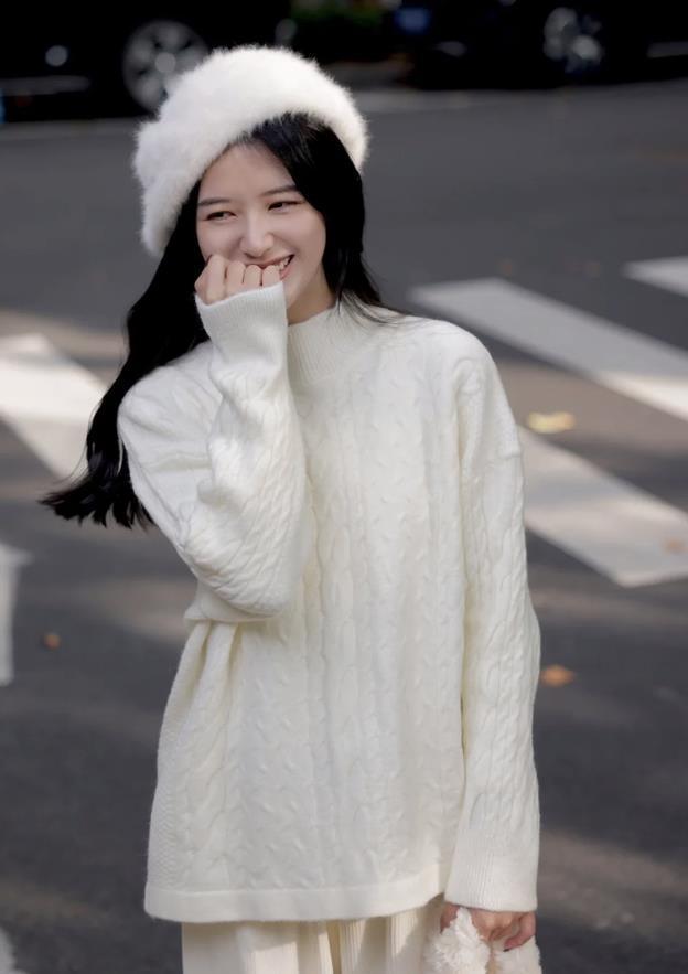 不過很多白色的衣服穿起來都會顯胖,所以選擇鬆弛一些的毛衣可以更好修飾身材。也能藏肉顯瘦!