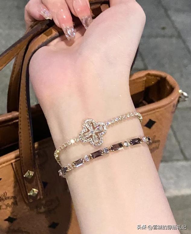 手鐲的款式和手鍊配套出現,比較講究我們對於分寸感的把握,佩戴的太過於花哨,就會顯得累贅,甚至說我們可以讓項鍊和手鐲形成同套的視覺效果,那麼佩戴起來的風格感會更強。