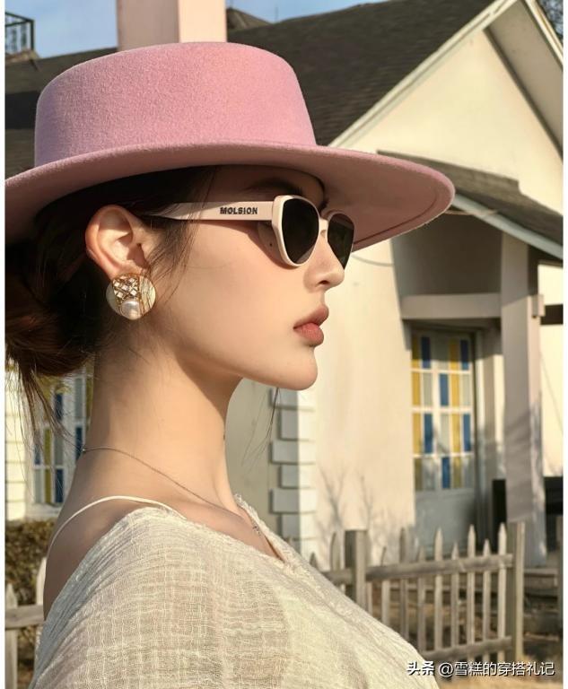 帽子又何嘗不是一種匹配設計的優選呢?帽子和眼鏡一般都是同框出現的,用來修飾面部的曲線或者遮擋你的髮際線都是特別好用的,比較適合臉型偏寬偏圓的女人。