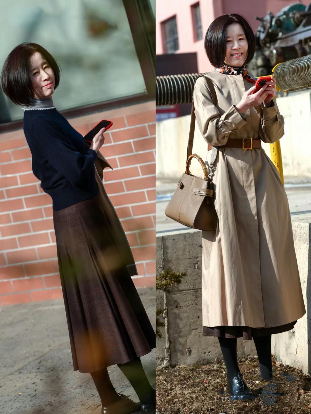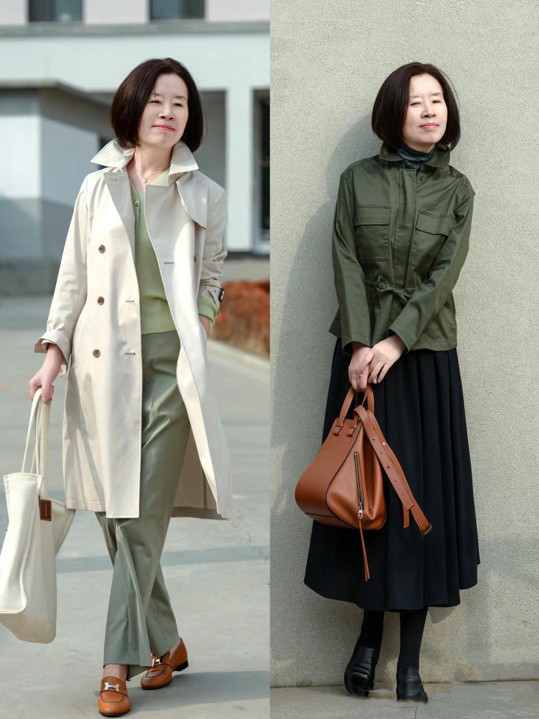 白色的小香風外套,軍綠色的長款風衣,都是別有魅力的單品。這種外套面料挺闊、可塑性更強,對於50+的女人來講,穿起來可以擁有更挺拔的身形比例。