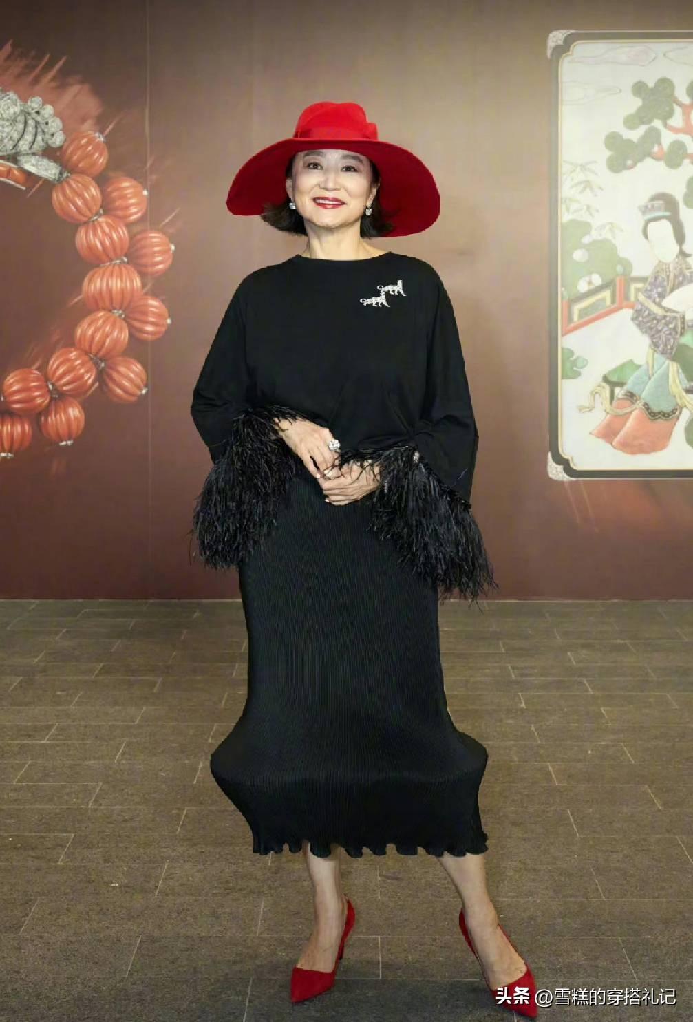 趙雅芝就非常喜歡運用一些純亮色的單品,只要顏色選對了,亮一點也是非常高級耐看的,並且在視覺上還特別吸引人。